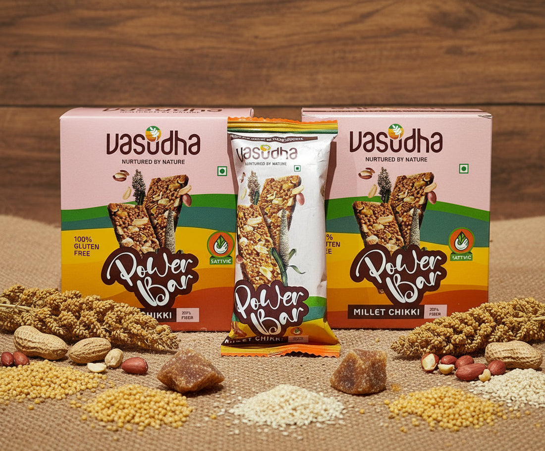Vasudha Power Bar delivers sustained energy through a carefully balanced blend of natural ingredients and...