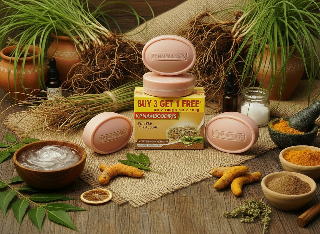 K P Namboodri Vetiver Herbal Soap harnesses the cooling and aromatic properties of vetiver root,...